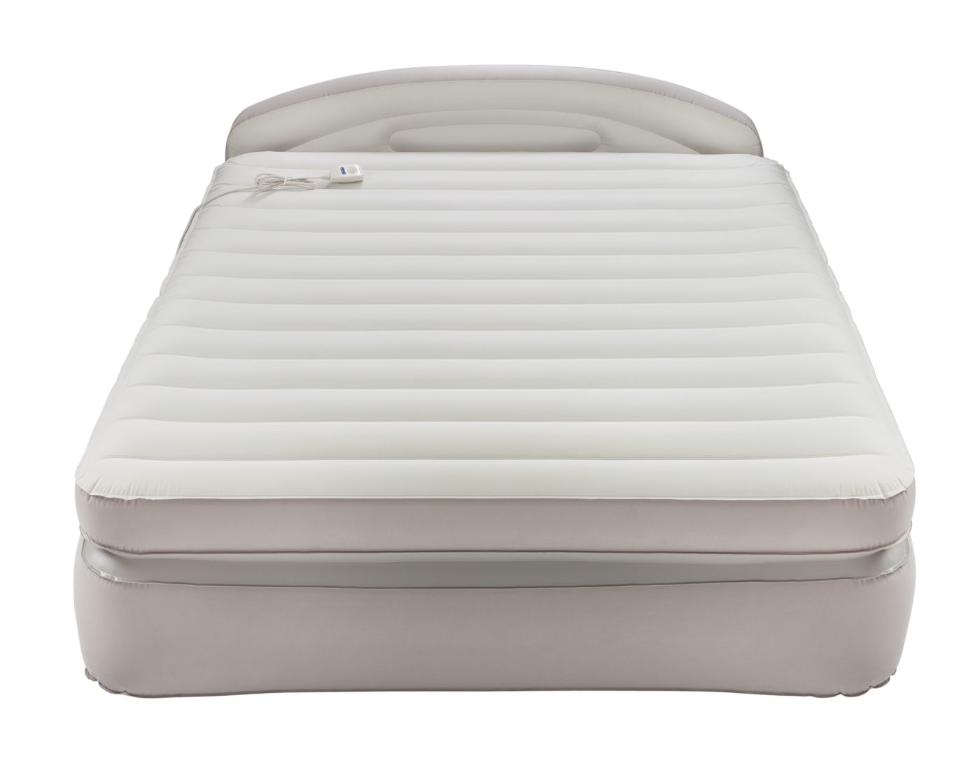 Aerobed opticomfort 18 queen air mattress with headboard on qvc. All damaged areas were taped up if necessary and we taped the sides of the box (refer to photos). Free shipping on orders $35+ and free pickup in store. Ez inflate luxury double high queen air mattress with built in pump, queen size, inflatable mattress for home camping travel, luxury blow up bed at a, 2 year warranty. Quick, easy to setup and very comfortable.